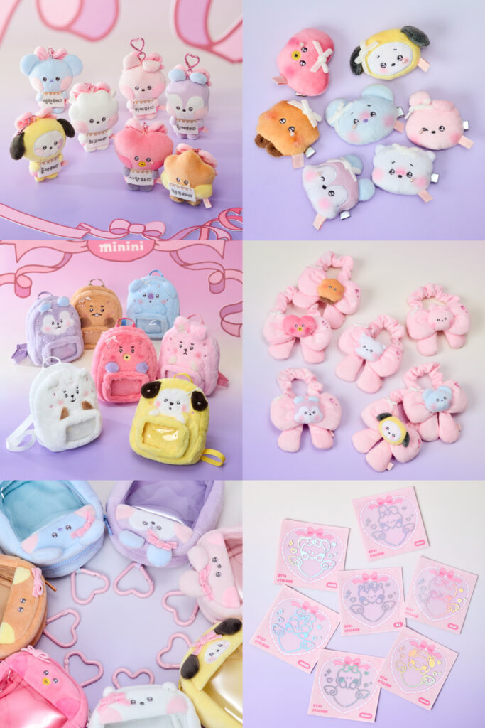 【BT21 RIBBONED YOU】 ● BT21 minini ぬいぐるみキーリング ● BT21 minini クリアポケットぬいぐるみバッグ ● BT21 minini クリアバッグチャームポーチ ● BT21 minini ぬいぐるみバンド ● BT21 minini ホログラムステッカー ● BT21 minini ランダムヘアクリップ