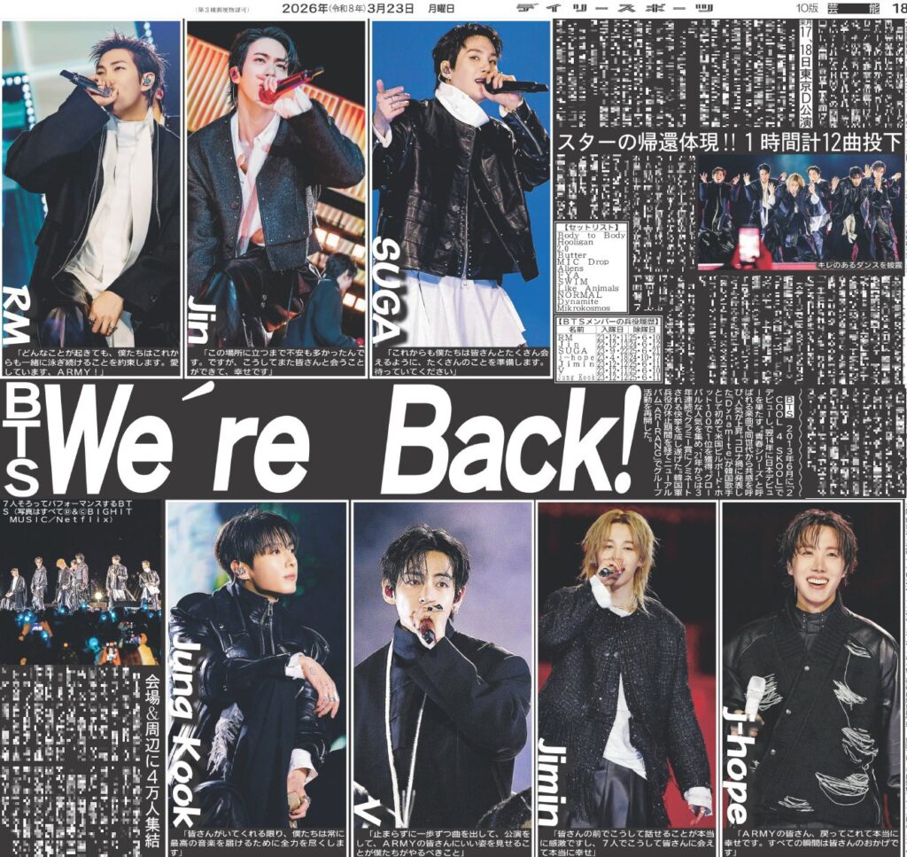 BTS COME BACK!!(東京版)2026年3月23日付