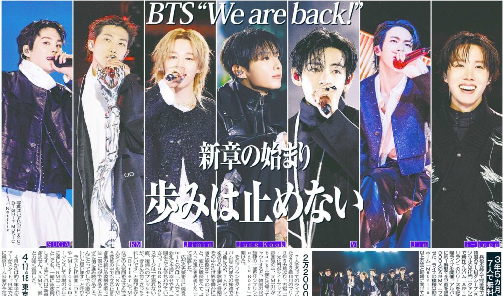 BTSのカムバック特別紙面のスポーツ新聞は、3月23日(月)より発売開始です。