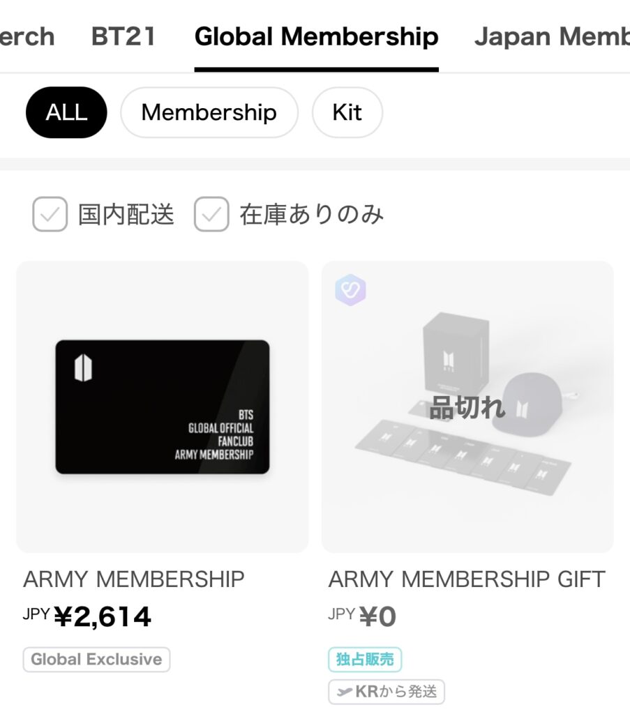 それぞれのARMY MEMBERSHIPには、Weverse Shopのメンバーシップ商品ページから購入することで入会できます。