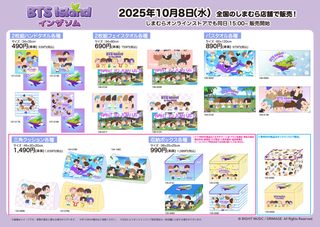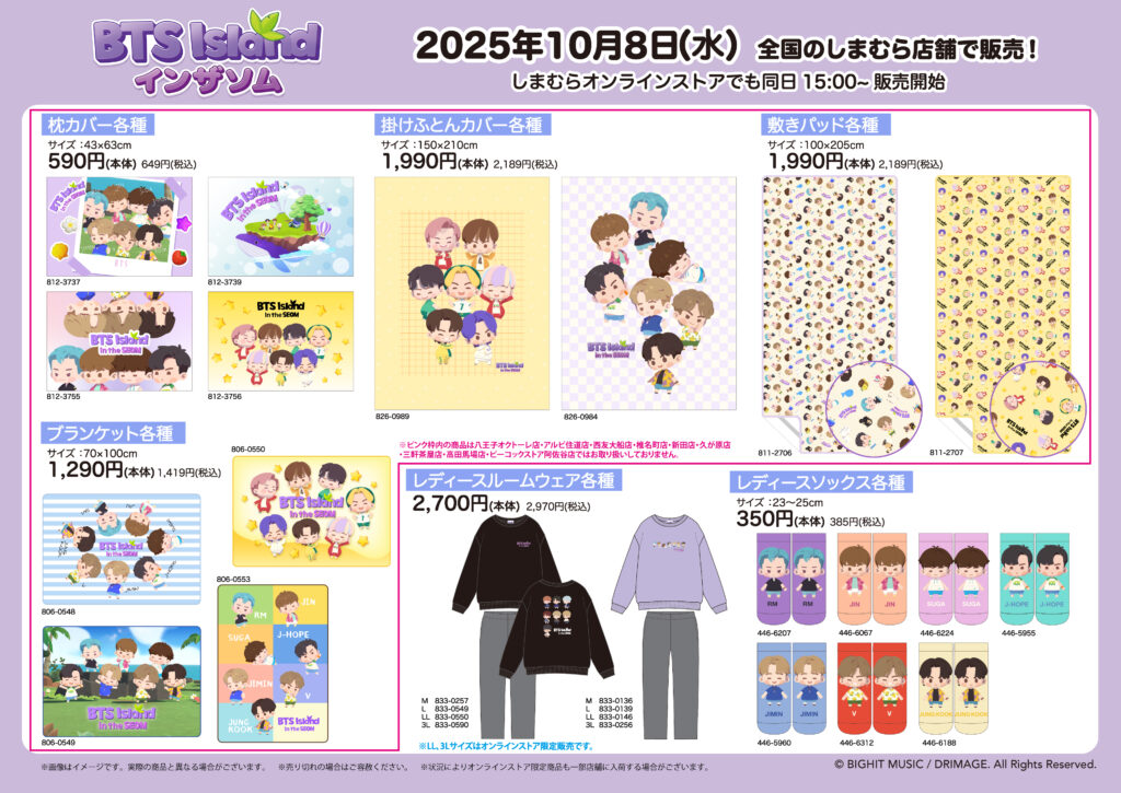 BTS Island:インザソムのしまむら限定アイテムは、全国のしまむら店舗および公式オンラインストアにて発売されます。