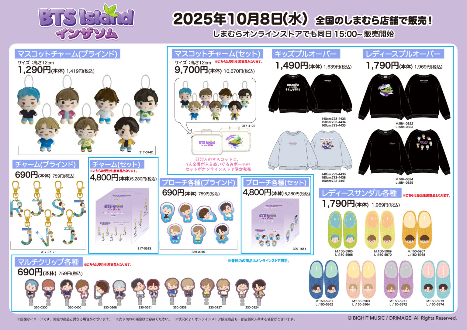 BTS Island:インザソムのしまむら限定アイテムは、全国のしまむら店舗および公式オンラインストアにて発売されます。