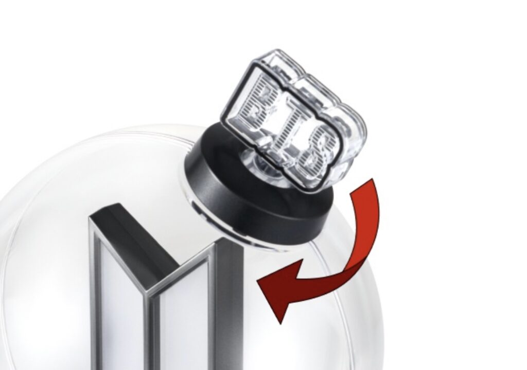 ④ Bluetoothモード/セルフモードの使用 ・アミボムのボタン①とボタン②を同時に2秒以上長押しし、Bluetoothモードに設定する ・スマホの設定メニューでBluetooth機能を有効にする ・スマホに応じてアプリストアまたはプレイストアから「BTS Official Light Stick Ver.4」を検索してアプリをインストールする *「BTS Official Light Stick Ver.4」アプリは、2026年2月10日(火)午後2時から検索およびダウンロードが可能となります。 ⑤ 公演モードの使用 ・公式アプリのホーム画面で公演モードを選択する ・公式アプリ画面に表示される案内に従ってBluetooth機能を使用し、アミボムとペアリングを行う ・観覧する公演を選択し、座席情報を入力する *ペアリングが完了すると、アミボムのLEDが自動的にオフになります。 *ペアリングを完了したアミボムは、公演開始前に電源をオンにすると自動的に公演モードに入ります。 *公演によって座席ペアリングが省略されます。 ⑥ パーツの交換方法 <アミボムパーツを取り外す場合> ・アミボム上部のヘッドを持ち、パーツ部分を反時計方向に回してパーツを取り外す
