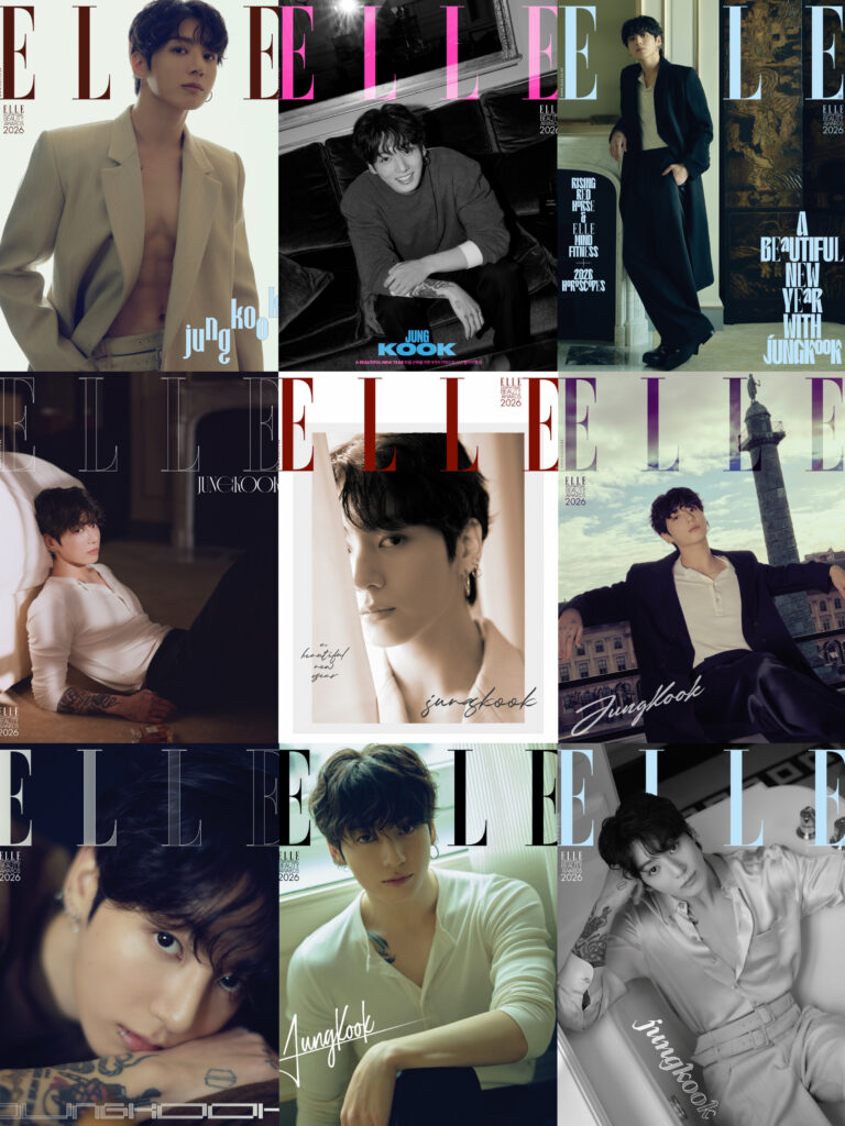 というコメントとともに、ジョングクの9つのカバーからなる2026年最初の「ELLE(エル)」が発売されることを発表しました。