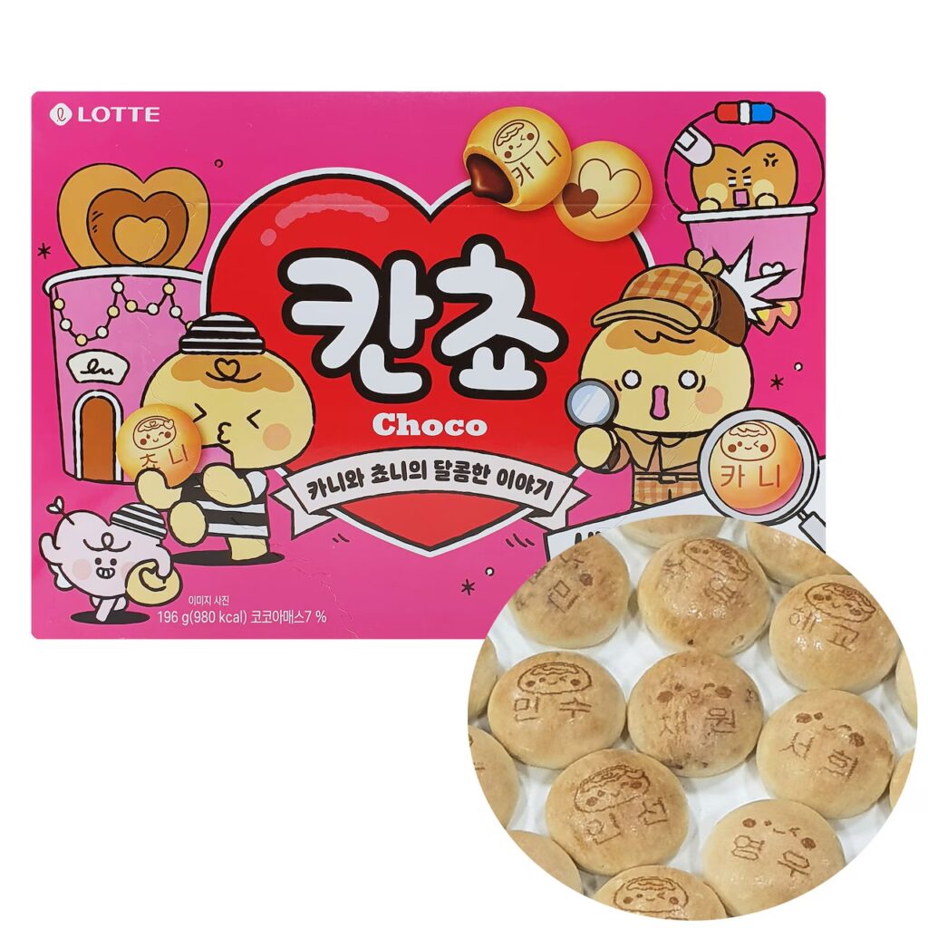カンチョは、日本でいうところの「パックンチョ」のようなお菓子で、チョコスナック一つひとつに名前が刻まれています。