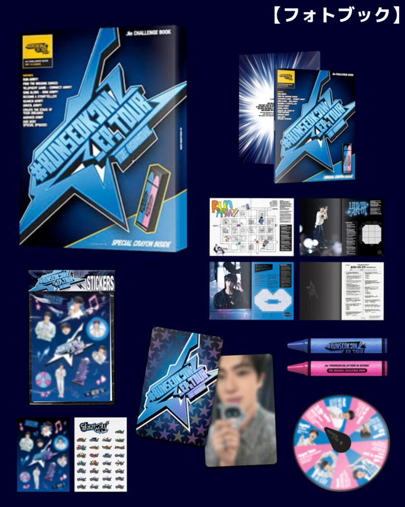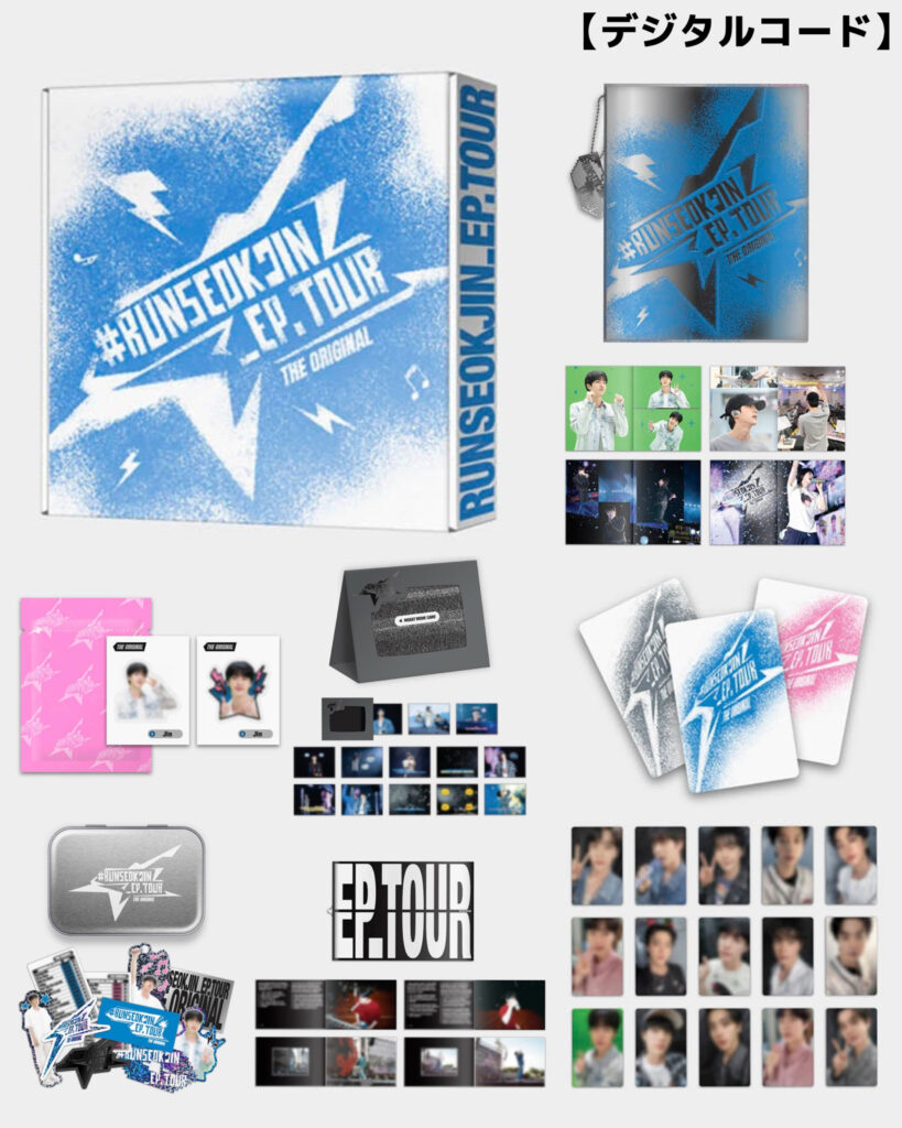 【Jin ‘#RUNSEOKJIN_EP.TOUR in GOYANG’ The Original】 <セット内容> 1. フォトブック(180ページ) 2. デジタルコードセット 収録時間:約216分 字幕:韓国語、英語、日本語、中国語 3. フィルムブック(44ページ) 4. ステッカーセット(10枚1セット) 5. フォトカードセット(10枚1セット) 6. MEMEカードセット(13枚1セット) 7. フォトシールセット(2枚1セット) 価格:9,020円(税込)